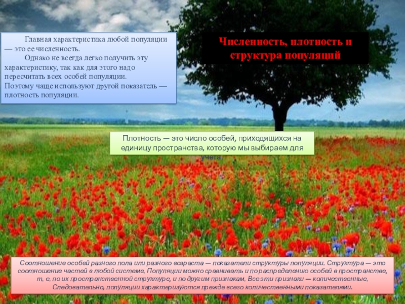 Однако не всегда легко получить эту характеристику, так как для этого надо пересчитать всех особей популяции. Поэтому чаще используют другой показатель — плотность популяции.