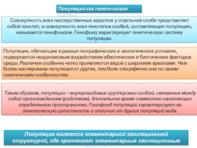 Популяция является элементарной эволюционной структурой, где протекают элементарные эволюционные явления.