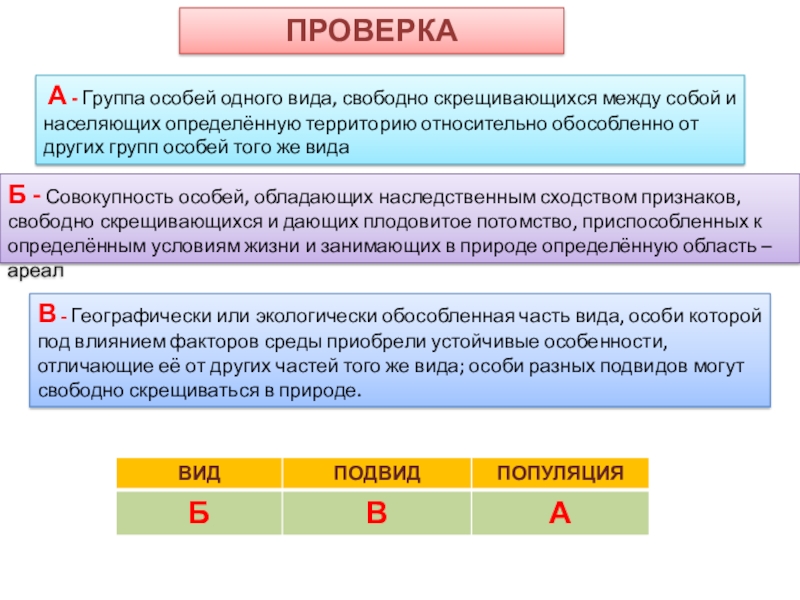 В - Географически или экологически обособленная часть вида, особи которой под влиянием факторов среды приобрели устойчивые особенности, отличающие её от других частей того же вида; особи разных подвидов могут свободно скрещиваться в природе.