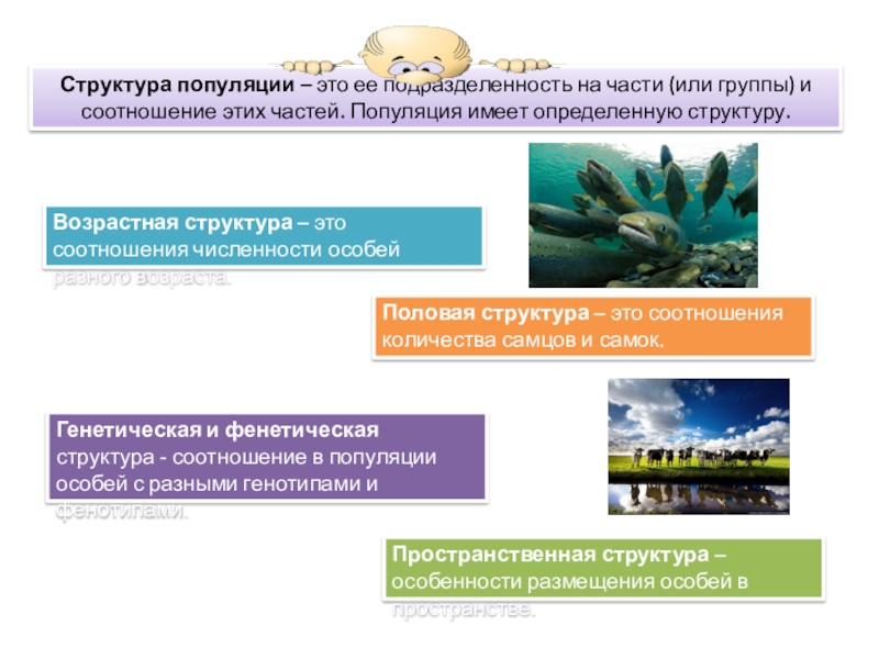 Генетическая и фенетическая структура - соотношение в популяции особей с разными генотипами и фенотипами.