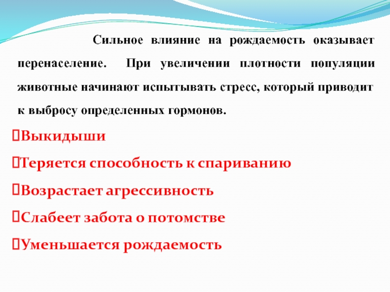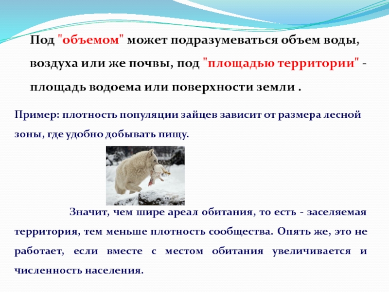 Пример: плотность популяции зайцев зависит от размера лесной зоны, где удобно добывать пищу.