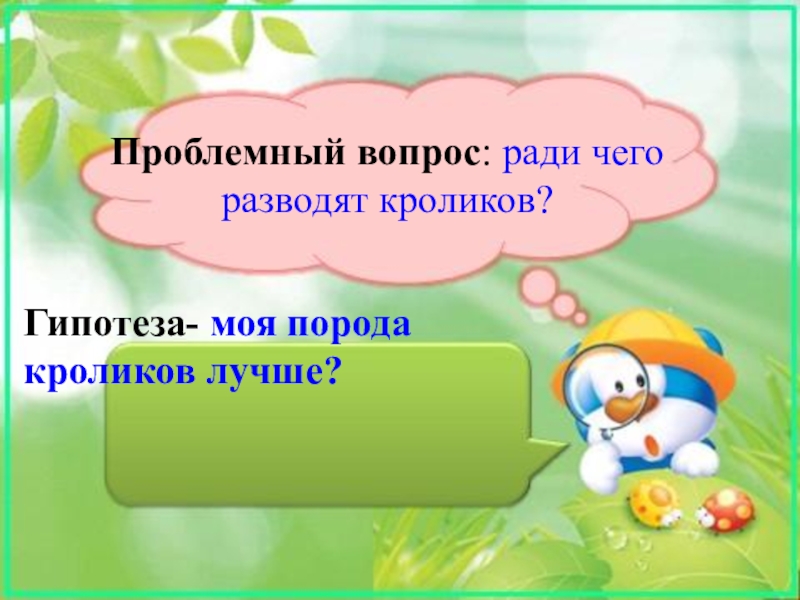 Проблемный вопрос: ради чего разводят кроликов?Гипотеза- моя порода кроликов лучше?