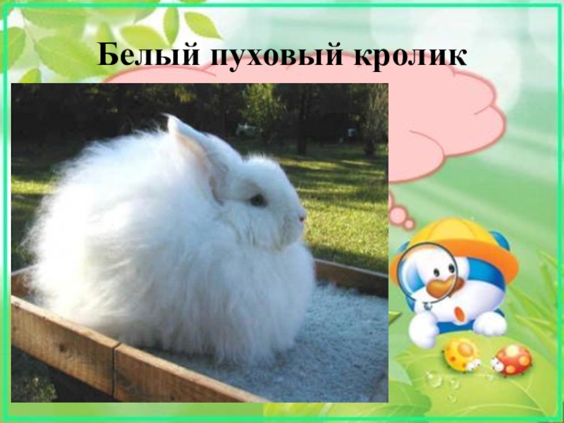 Слайд 20Белый пуховый кролик