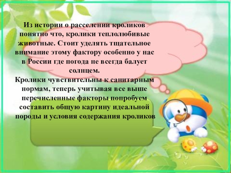 Слайд 9Из истории о расселении кроликов понятно что, кролики теплолюбивые животные. Стоит