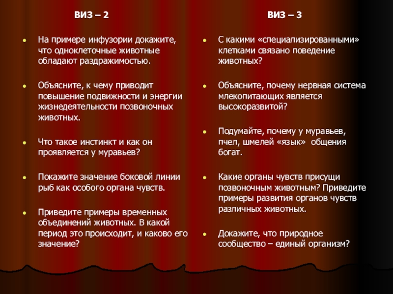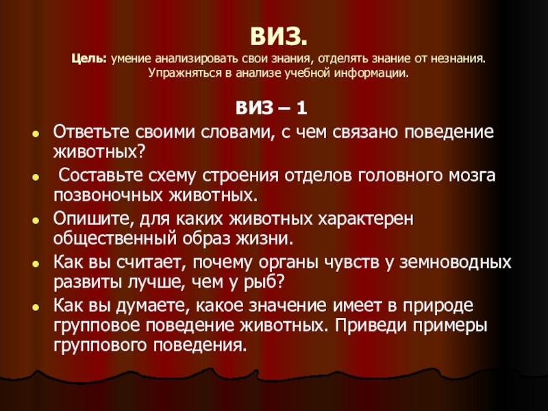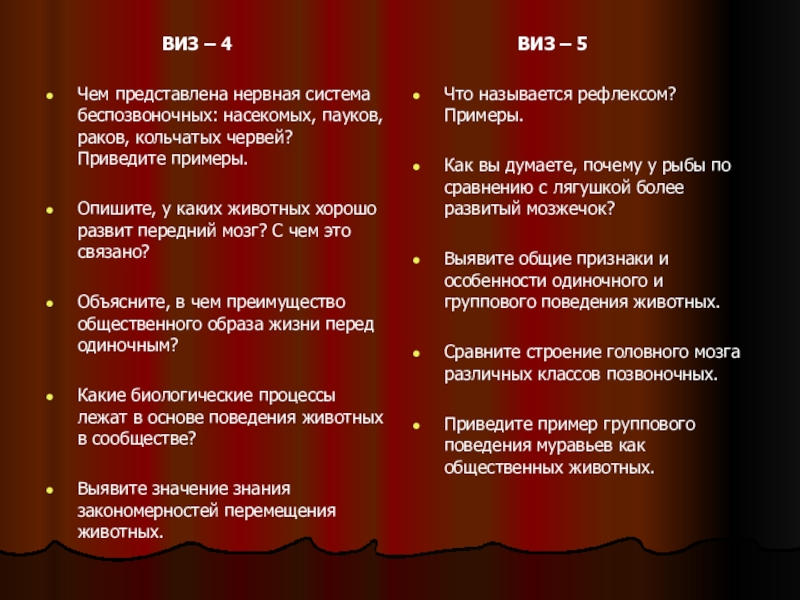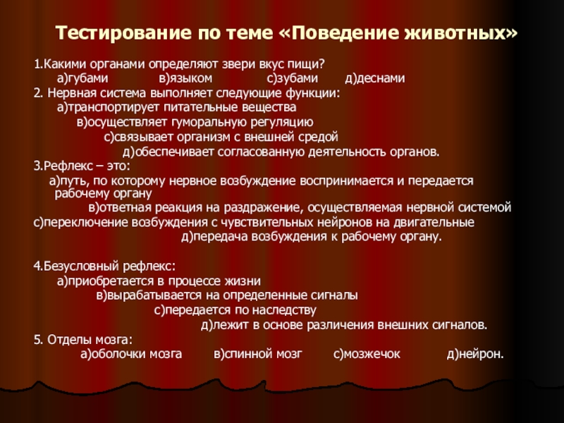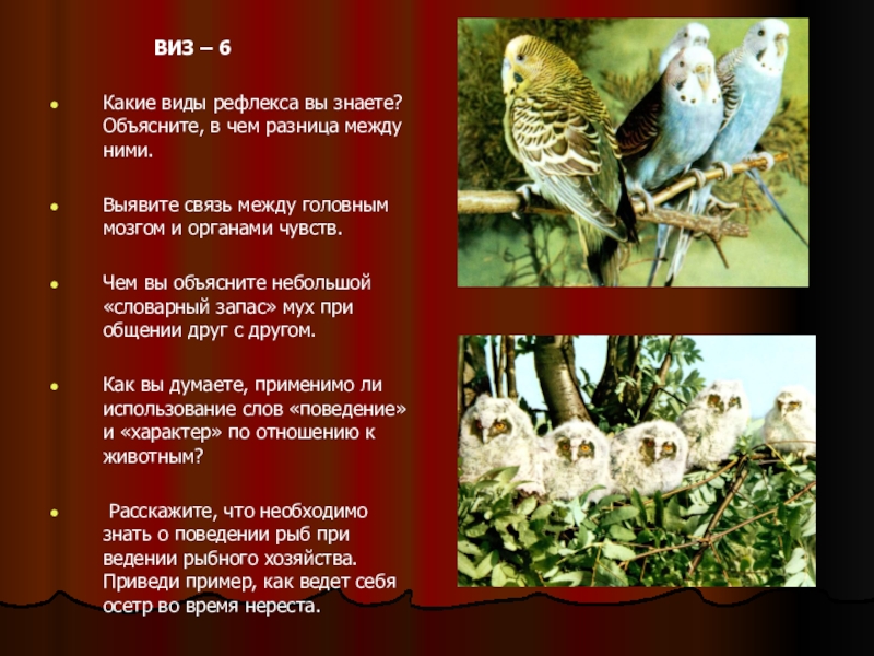 особенности поведения различных животных во взаимосвязи со строением нервной системы;
