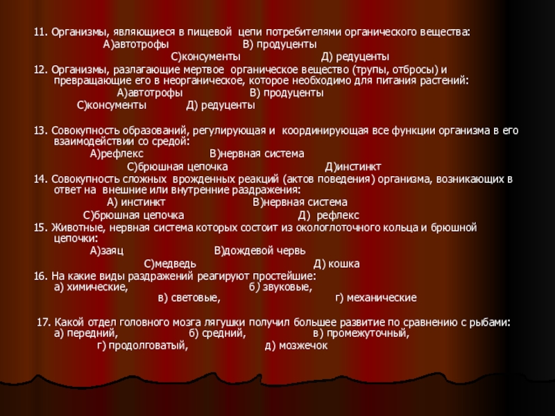 Слайд 2611. Организмы, являющиеся в пищевой цепи потребителями органического вещества: