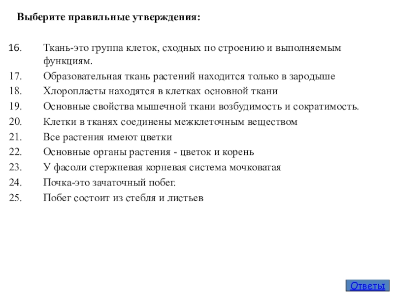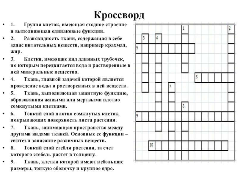 9. Ткань, клетки которой имеют небольшие размеры, тонкую оболочку и крупное ядро.