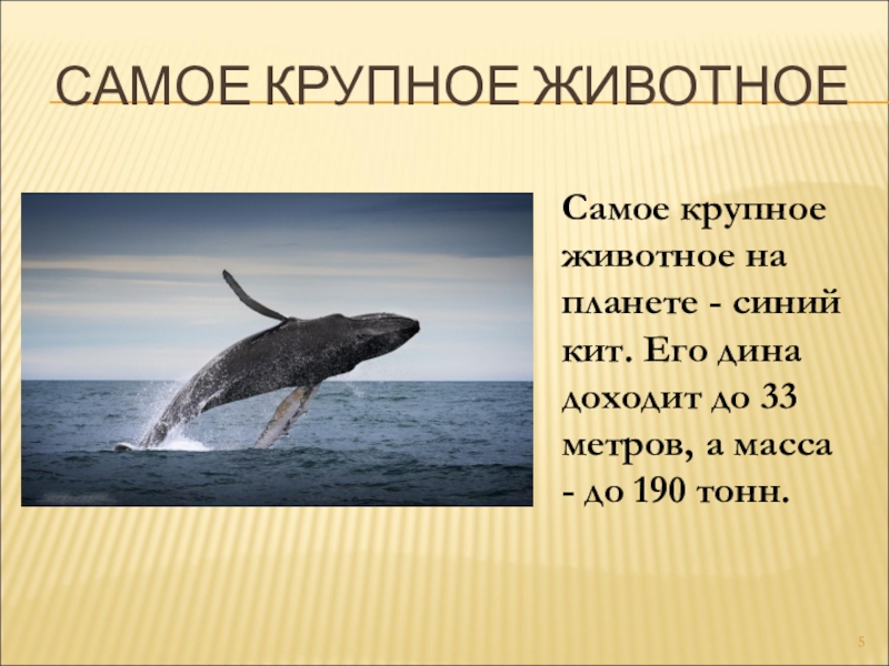 Слайд 5САМОЕ КРУПНОЕ ЖИВОТНОЕ