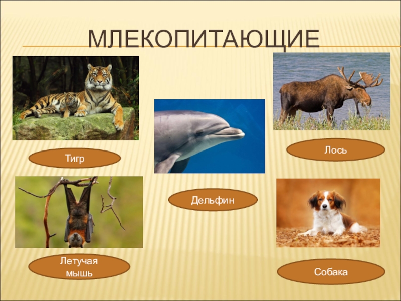 МЛЕКОПИТАЮЩИЕ Тигр ДельфинЛось Летучая мышь Собака