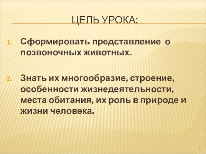 Сформировать представление о позвоночных животных.