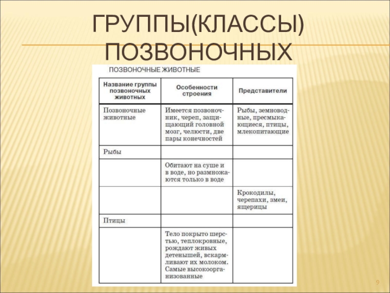 Слайд 9ГРУППЫ(КЛАССЫ) ПОЗВОНОЧНЫХ