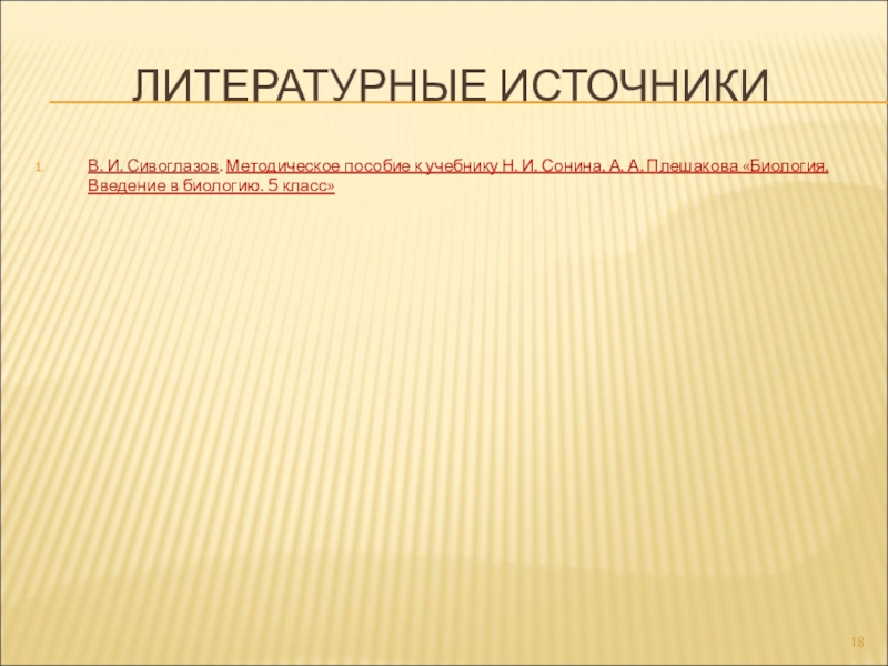 ЛИТЕРАТУРНЫЕ ИСТОЧНИКИВ. И. Сивоглазов. Методическое пособие к учебнику Н. И. Сонина, А. А. Плешакова «Биология. Введение в