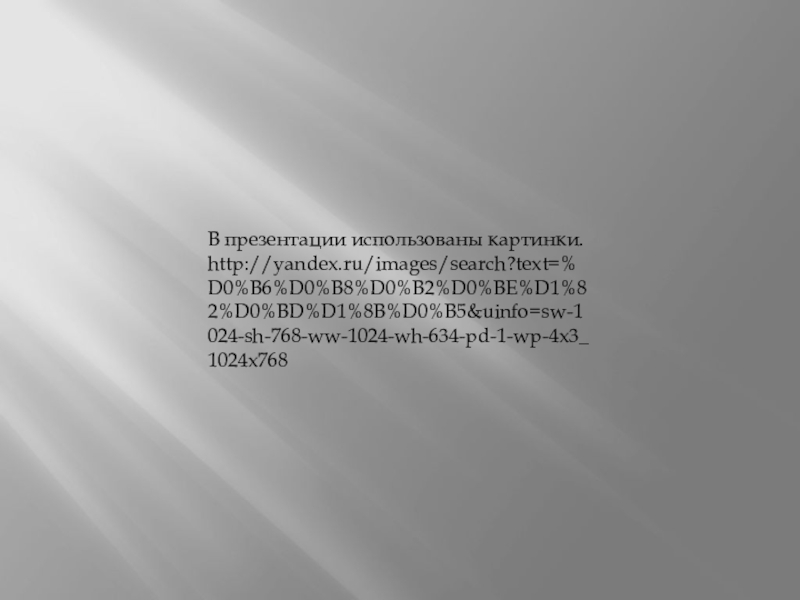 В презентации использованы картинки. http://yandex.ru/images/search?text=%D0%B6%D0%B8%D0%B2%D0%BE%D1%82%D0%BD%D1%8B%D0%B5&uinfo=sw-1024-sh-768-ww-1024-wh-634-pd-1-wp-4x3_1024x768