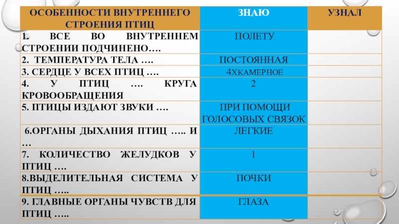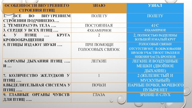 ТЕМА УРОКА: «ВНУТРЕННЕЕ СТРОЕНИЕ ПТИЦ»