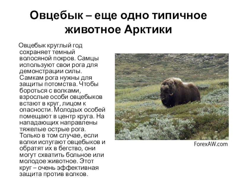 Слайд 9Овцебык – еще одно типичное животное Арктики
