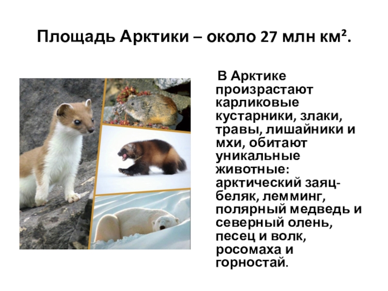 Слайд 2Площадь Арктики – около 27 млн км².