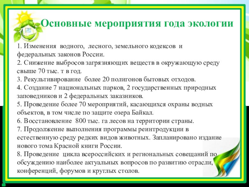 Цель его проведения — привлечь внимание к проблемным вопросам в природоохранной сфере и улучшить состояние экологической безопасности страны.