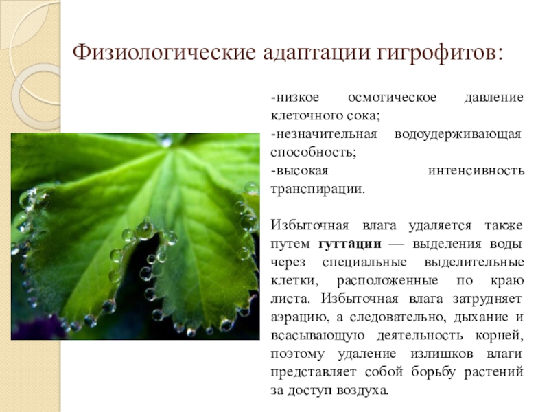 Физиологические адаптации гигрофитов: