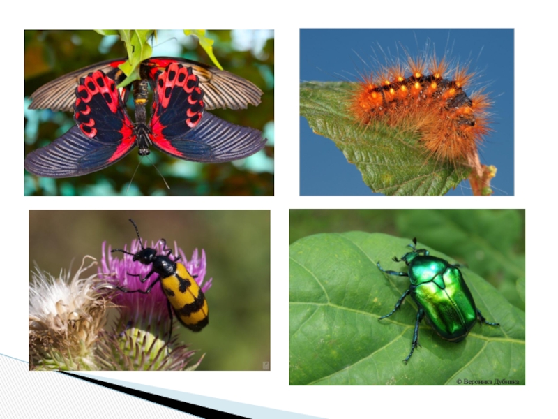 •Гусеницы бабочек часто зеленые, под цвет листьев, или темные, под цвет коры или земли.