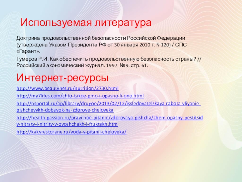 Гумеров Р.И. Как обеспечить продовольственную безопасность страны? // Российский экономический журнал. 1997. №9. стр. 61.
