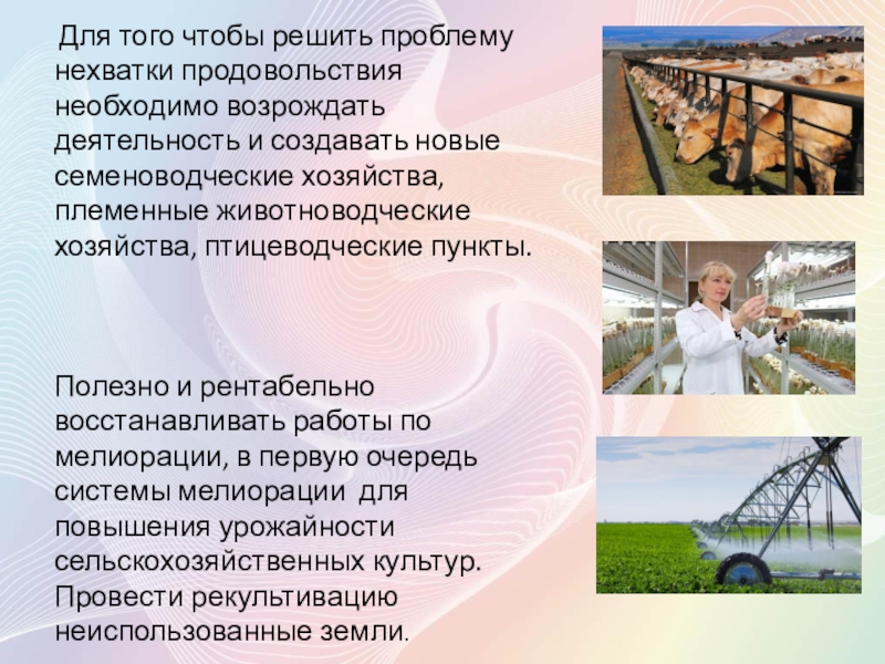 Слайд 11 Для того чтобы решить проблему нехватки продовольствия необходимо возрождать деятельность