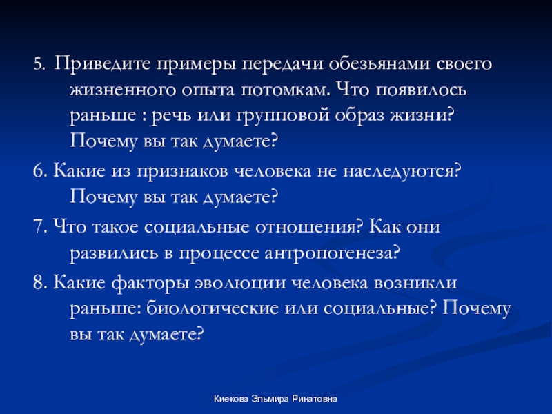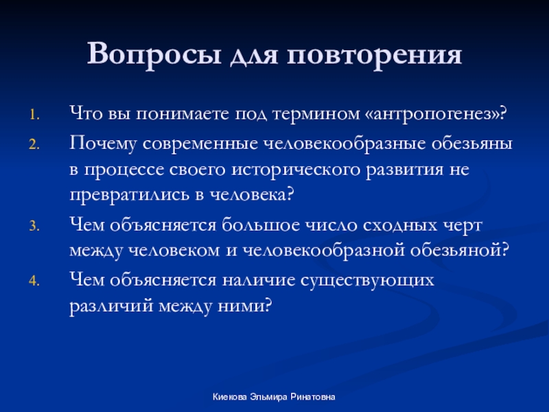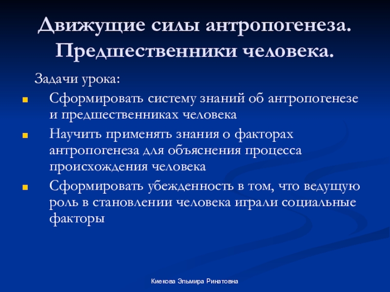 Научить применять знания о факторах антропогенеза для объяснения процесса происхождения человека