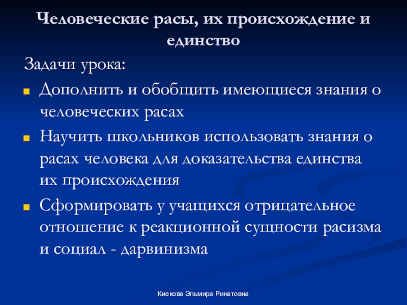 Сформировать у учащихся отрицательное отношение к реакционной сущности расизма и социал - дарвинизма