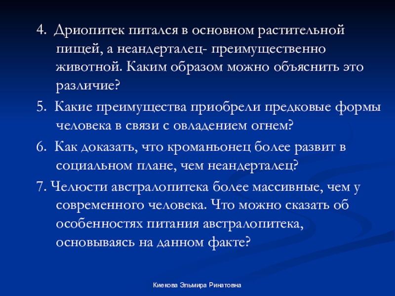 4. Дриопитек питался в основном растительной пищей, а неандерталец-