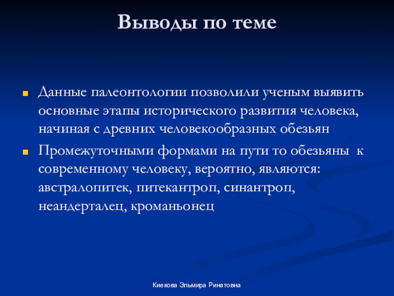 Промежуточными формами на пути то обезьяны к современному человеку, вероятно, являются: австралопитек, питекантроп, синантроп, неандерталец, кроманьонец