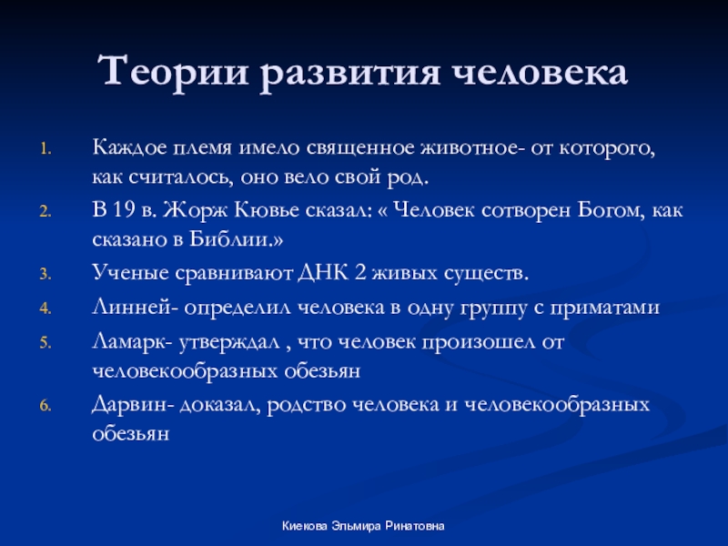 В 19 в. Жорж Кювье сказал: « Человек сотворен Богом, как сказано в Библии.»