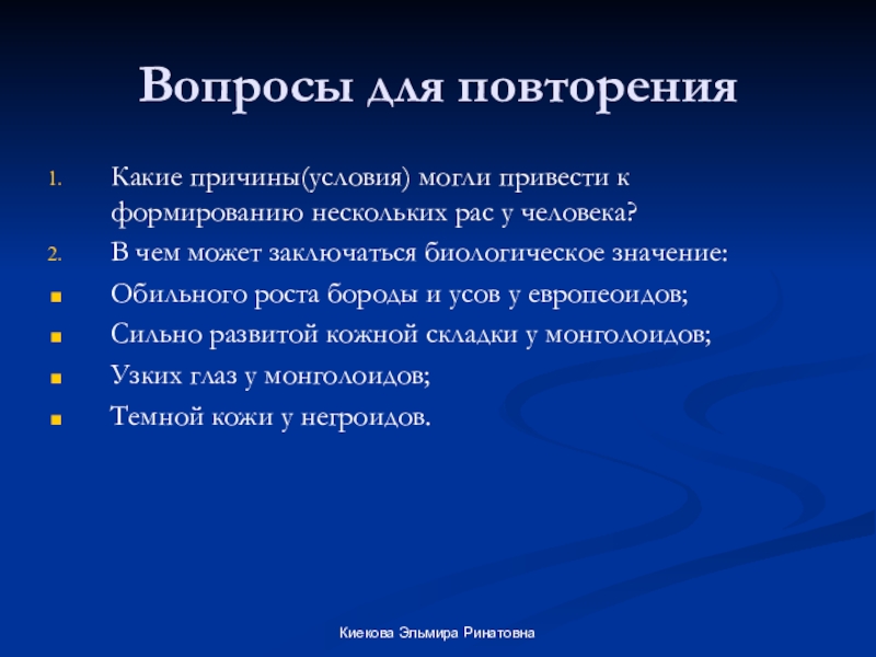 Научить школьников использовать знания о расах человека для доказательства единства их происхождения