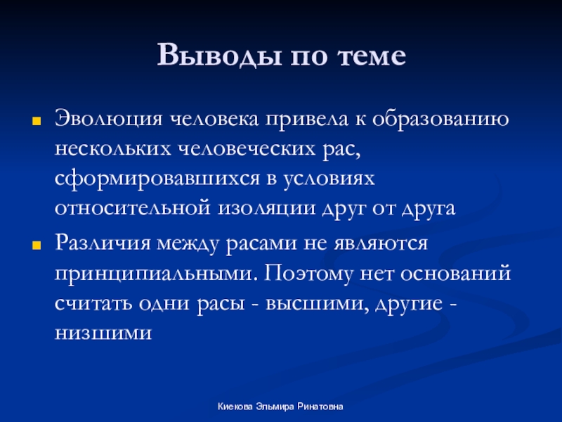 Различия между расами не являются принципиальными. Поэтому нет оснований считать одни расы - высшими, другие -низшими