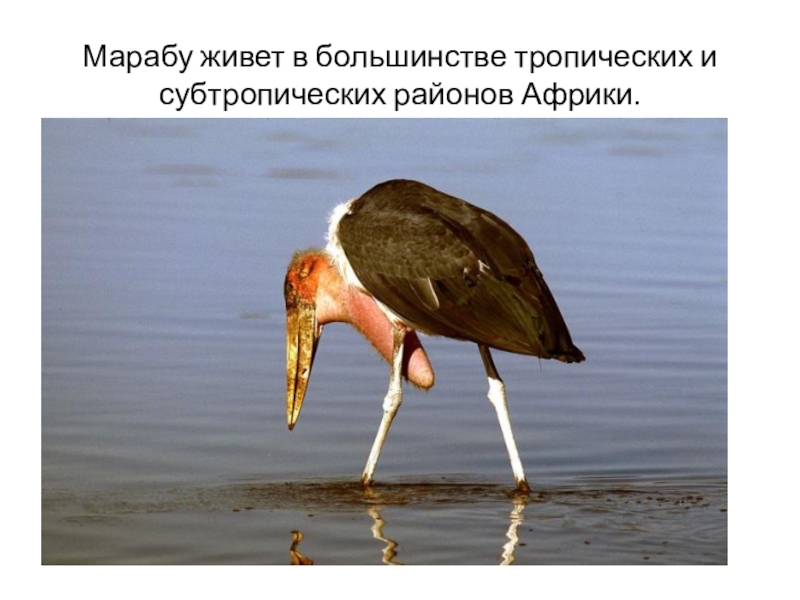Слайд 2Марабу живет в большинстве тропических и субтропических районов Африки.