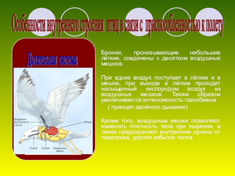 Особенности внутреннего строения птиц в связи с приспособленностью к полету