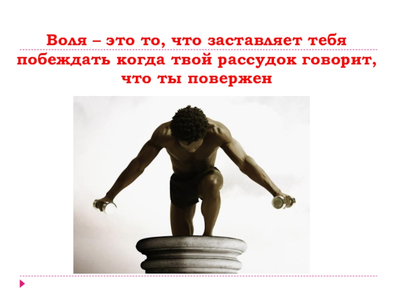Слайд 18Воля – это то, что заставляет тебя побеждать когда твой рассудок