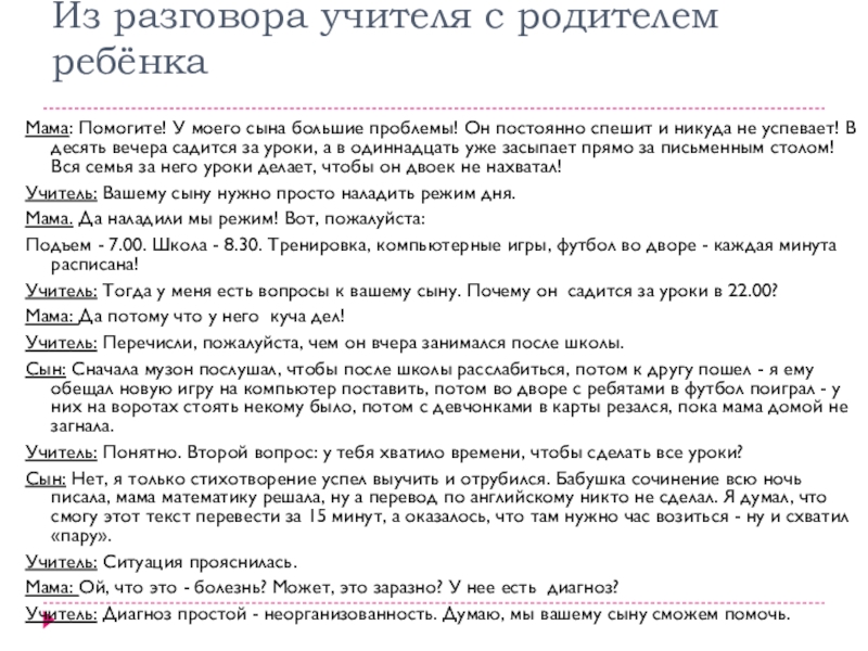 Учитель: Диагноз простой - неорганизованность. Думаю, мы вашему сыну сможем помочь.