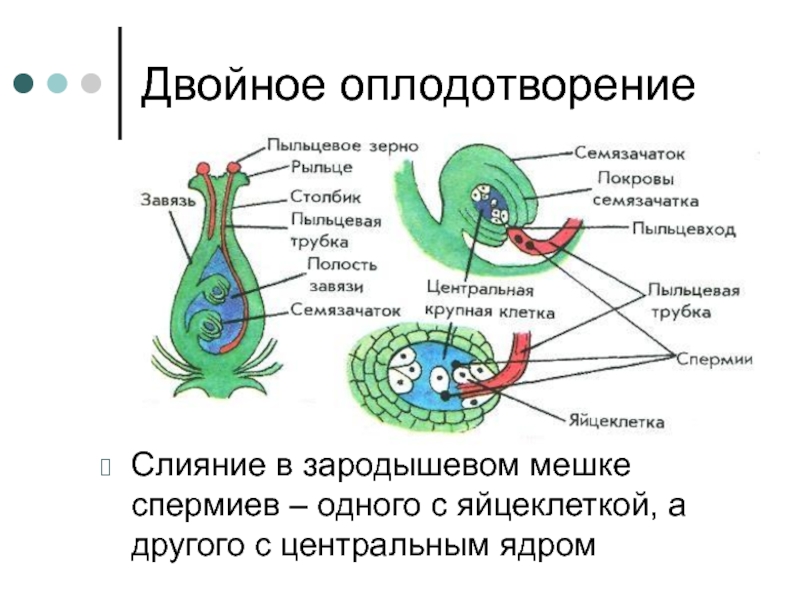 Слияние в зародышевом мешке спермиев – одного с яйцеклеткой, а