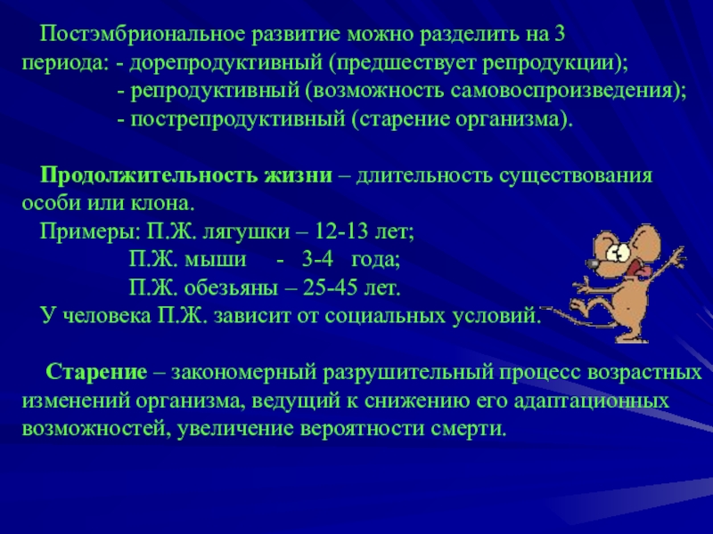 от выхода из яйцевых оболочек или рождения до смерти организма.
