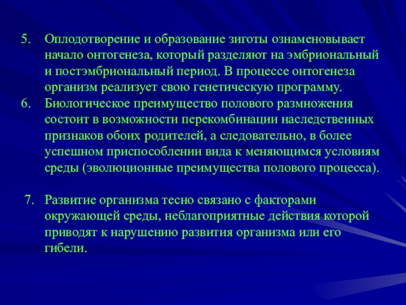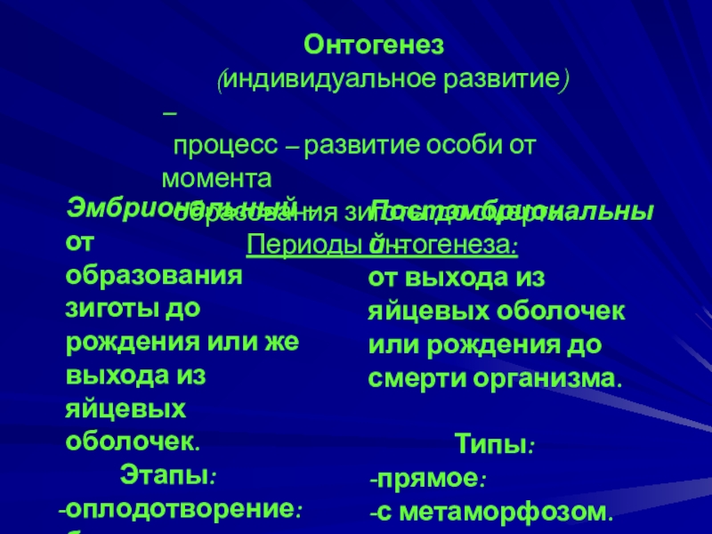 образования зиготы до рождения или же выхода из яйцевых оболочек.