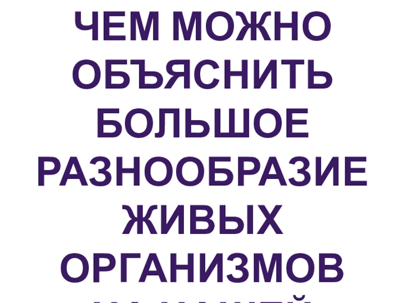 ЧЕМ МОЖНО ОБЪЯСНИТЬ БОЛЬШОЕ РАЗНООБРАЗИЕЖИВЫХ ОРГАНИЗМОВ НА НАШЕЙ ПЛАНЕТЕ?
