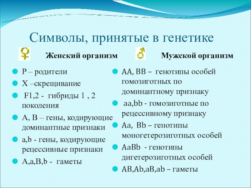 AA, BB – генотипы особей гомозиготных по доминантному признаку