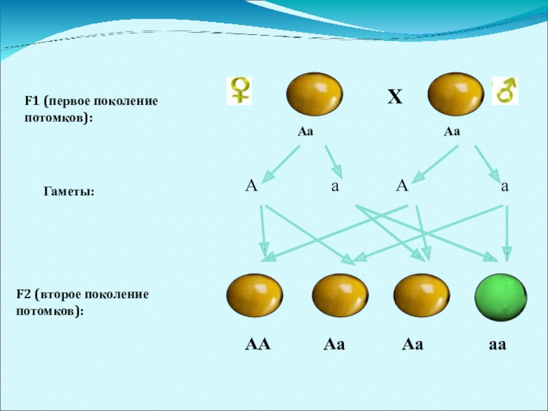 а (зеленый цвет горошин), b (морщинистая форма) – рецессивные признаки