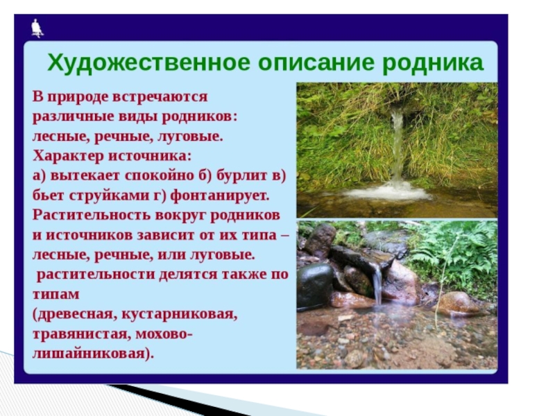 Презентация, доклад по биологии Родники