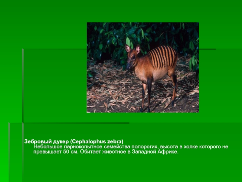 Слайд 17Зебровый дукер (Cephalophus zebra)