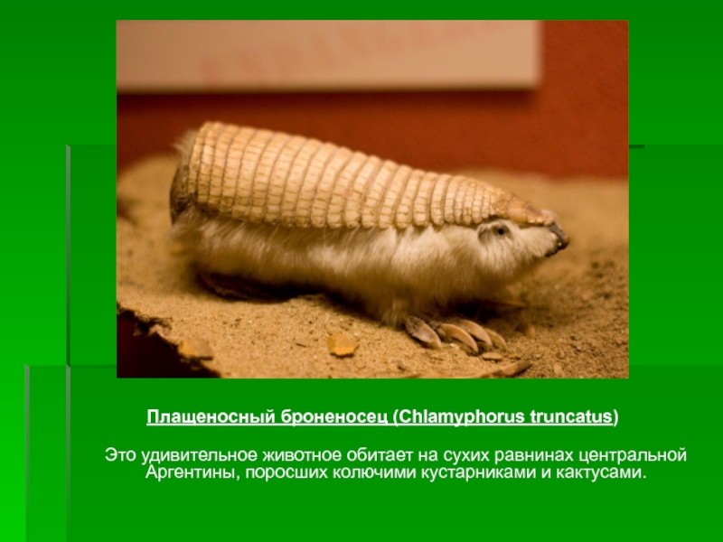Слайд 2Плащеносный броненосец (Chlamyphorus truncatus)