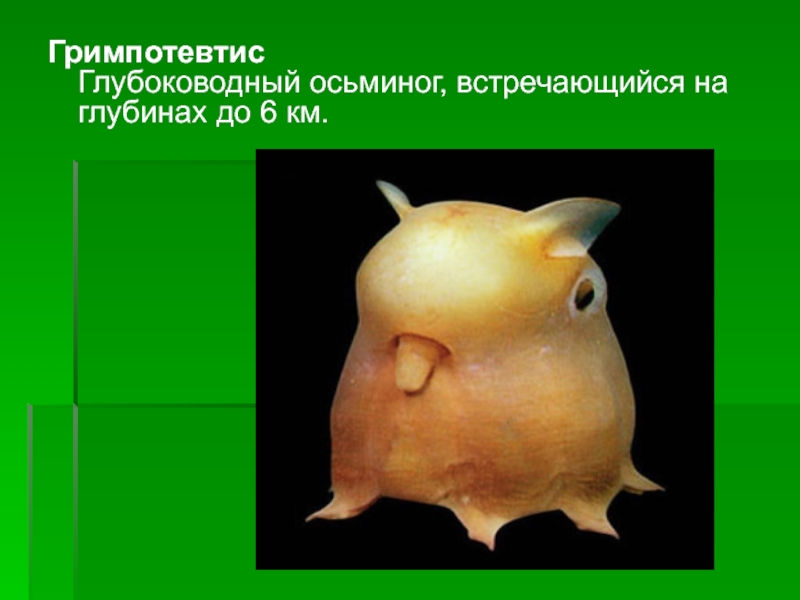 Глубоководный осьминог, встречающийся на глубинах до 6 км.