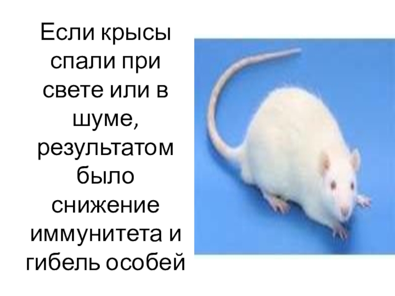 Слайд 29Если крысы спали при свете или в шуме, результатом было снижение
