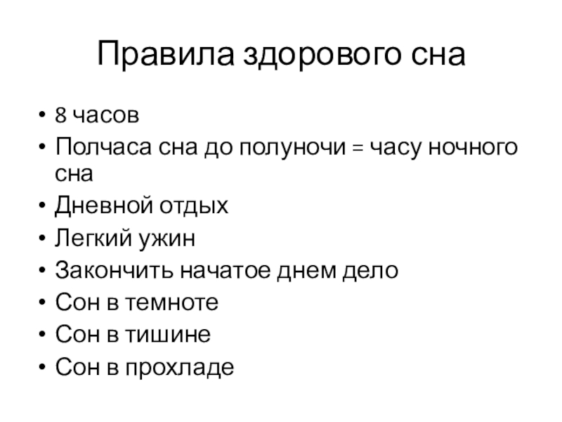 Правильный сон- это сон в прохладе, темноте, тишине и не позднее