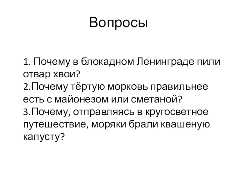 3.Почему, отправляясь в кругосветное путешествие, моряки брали квашеную капусту?