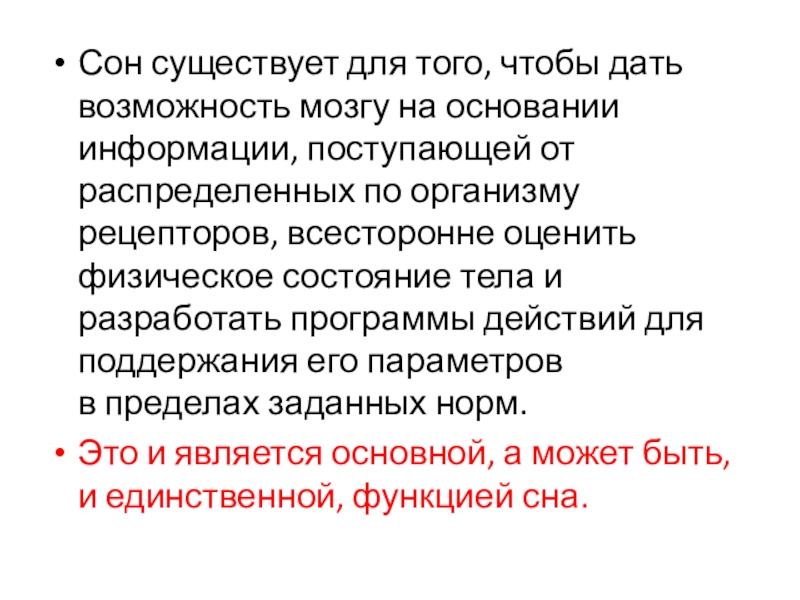 Слайд 31Сон существует для того, чтобы дать возможность мозгу на основании информации,